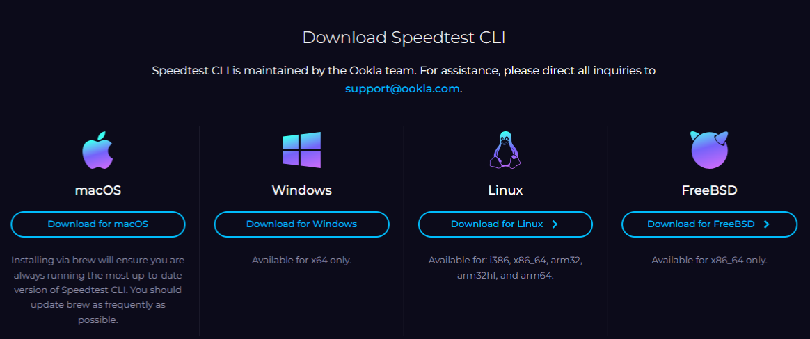 Note: Windows does not come with a built-in command-line tool to perform internet speed tests natively, but you can install a third-party tool like Ookla's official Speedtest CLI (also available for macOS, Linux, and FreeBSD).
