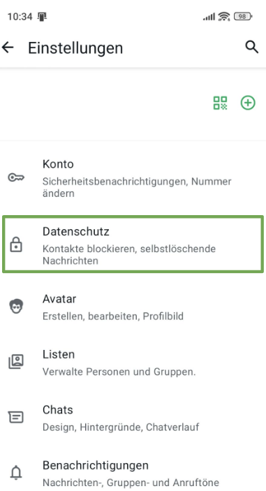 - Öffne die Einstellungen und tippe auf die Chat sperren.