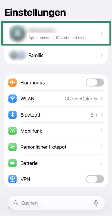 - Öffnen Sie die Einstellungen und tippen danach oben auf Ihrem Bildschirm auf Ihre Apple ID.