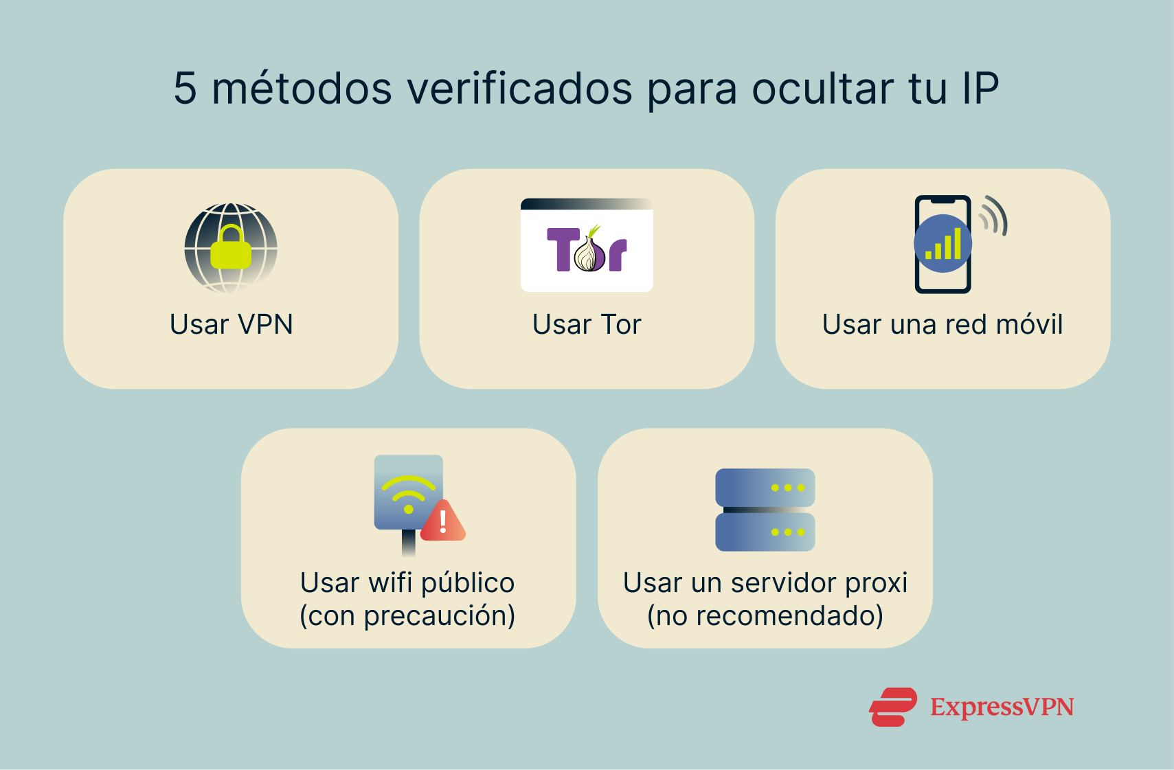 Existen varias formas de ocultar tu dirección IP y cada una de ellas tiene sus ventajas y desventajas. A continuación, se indican los métodos que podrías tener en cuenta para proteger tu identidad en Internet.