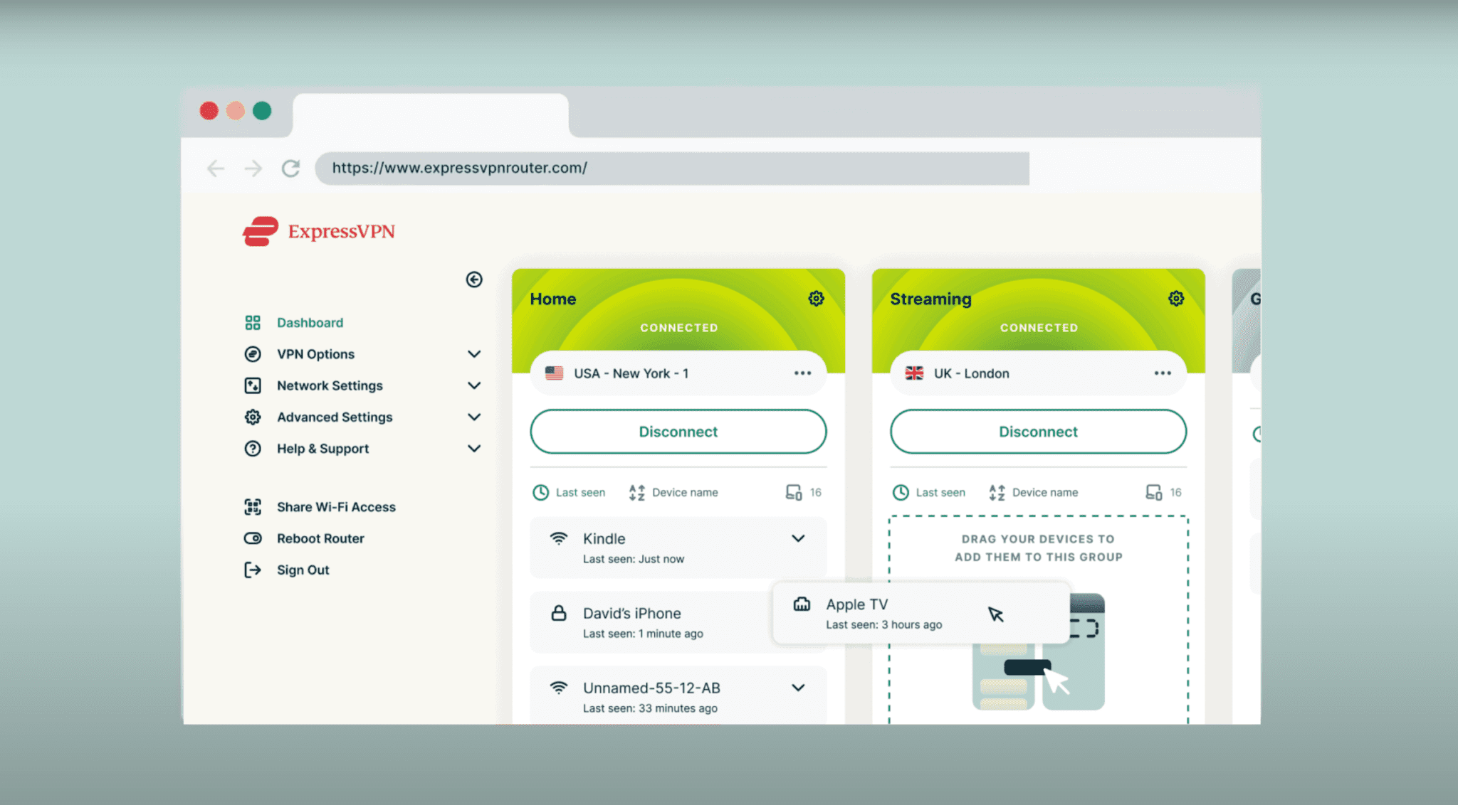 Aircove di ExpressVPN ti permette di connetterti a più posizioni VPN contemporaneamente