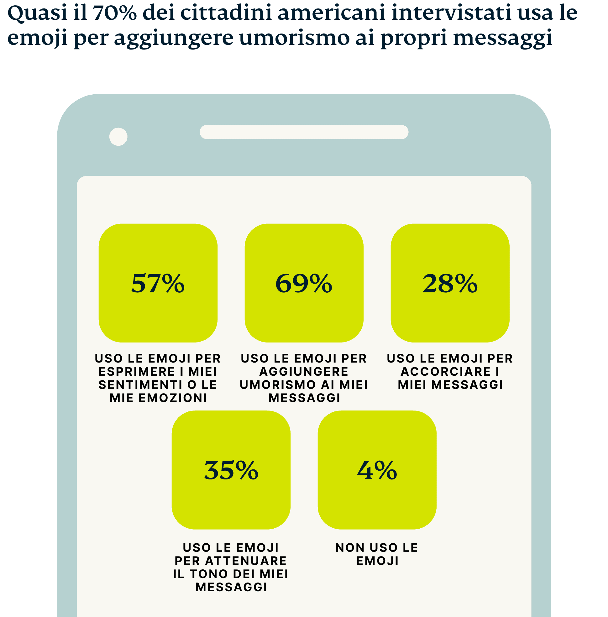 • Il nostro cervello elabora le emoji allo stesso modo delle parole. Il loro utilizzo può cambiare il modo in cui interpretiamo un messaggio.