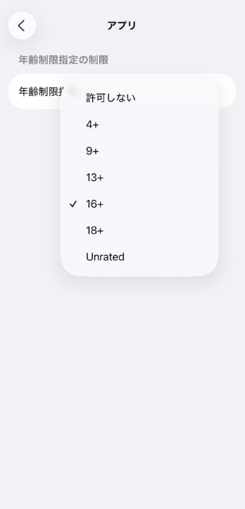 - 年齢制限したいカテゴリを選択してください。例:アプリ、テレビ番組、映画、書籍。