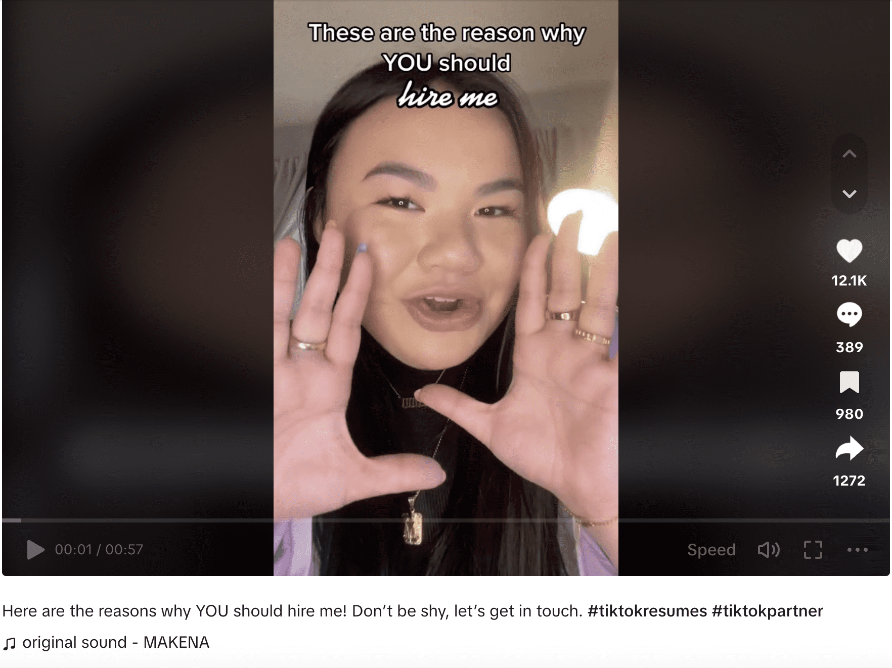 Deze nieuwe golf werkzoekenden vertrouwt vaak zwaar op visuele media, bijvoorbeeld een video-cv, om hun vaardigheden te laten zien. Het is niet verrassend dat dit het vaakst gebeurt op TikTok.