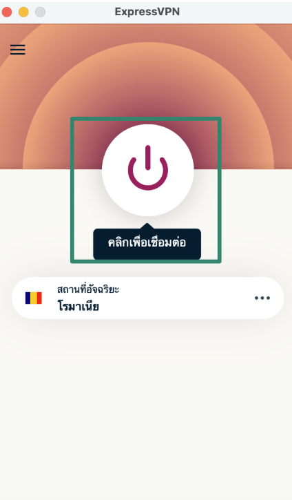 - กดปุ่ม การเชื่อมต่ออย่างรวดเร็วเพื่อเชื่อมต่อไปยัง ExpressVPN และปิดบัง IP address ของคุณ