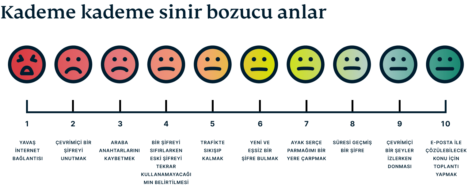 Katılımcıların çoğu (%35), çevrimiçi hesap şifresini sıfırlamaktan daha sinir bozucu tek şeyin yavaş internet hızı olduğunu belirtti. Bunu, şifre sıfırlarken yeni şifrenin eski şifre ile aynı olamayacağının söylenmesi takip ediyor (%25).